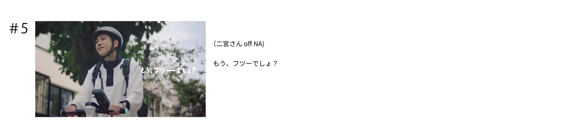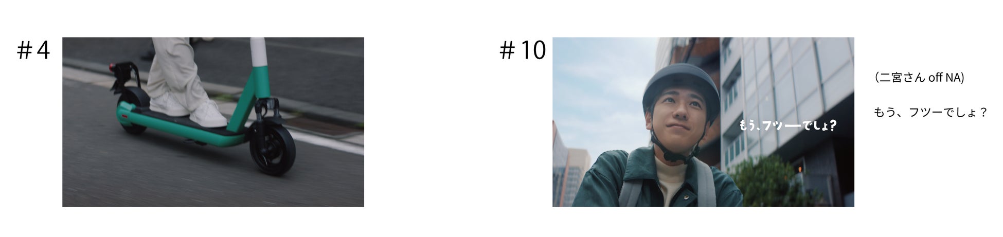 今回は二宮さんが街なかでLUUPに乗って颯爽と現れる「登場」篇と、カフェでお茶をする女性客がLUUPに乗った二宮さんと偶然遭遇する「乗ってる」篇の2篇が公開。「もう、フツーでしょ?」というセリフと共に、実は普段から“LUUPユーザー”でもあるという二宮さんの、当たり前の日常を切り取ったようなリアルな演出となっています。