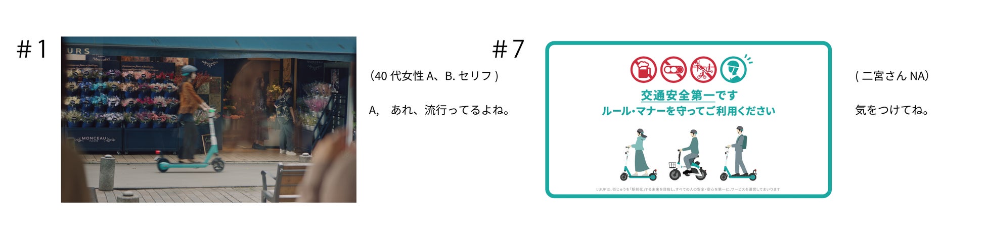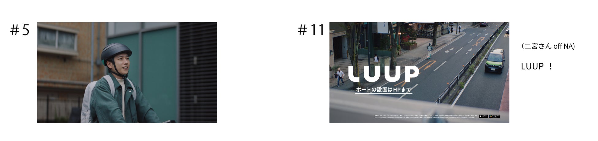 さらにメイキングインタビューでは、「LUUPに乗っていると驚かれる」といったエピソードや、普段からLUUPに乗っているだけに「遭遇する可能性もあり得ますね。『あれ、ニノ?』って」といった話を打ち明けてくれたほか、LUUPの推奨ルートで知らない道を走る楽しみについて語るなど、プライベートでのLUUPの使い方やその魅力を余すことなく語っています。二宮さんの普段の生活を連想させる、ありのままの自然な演技や表情にぜひご注目ください。