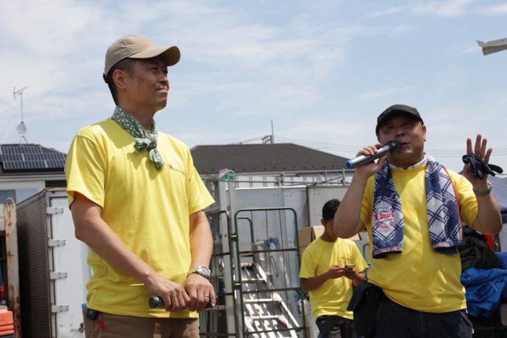クラウドファンディングに先駆けて、2024年7月27日にタイへ送る荷物の仕分け団体に寄せられた寄贈品が置かれている埼玉県さいたま市岩槻区の株式会社 総美で行われた。当日は、団体顧問を務める元埼玉県警察警部補で、警察24時でコメンテーターの佐々木成三氏の他、テーマソングを手がけた音楽ユニット「バス☆ロビ」も参加。一般参加者と一緒に猛暑の中で、汗まみれになって仕分け作業をした。