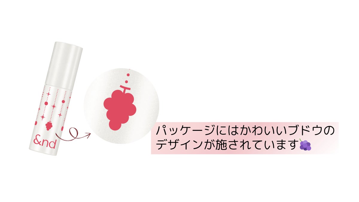 | ▽ポイント① &nd by rom&nd史上初、“シャルドネ”の香り付き。 まるで本物のシャルドネを口に含んだかのようなフルーティーな香り。 |