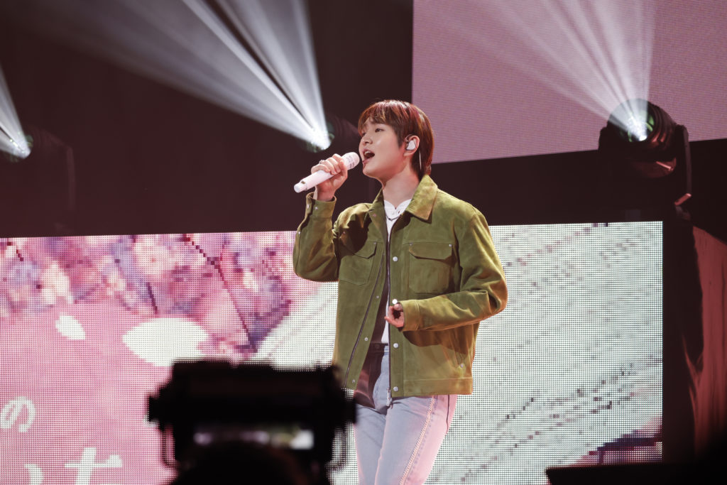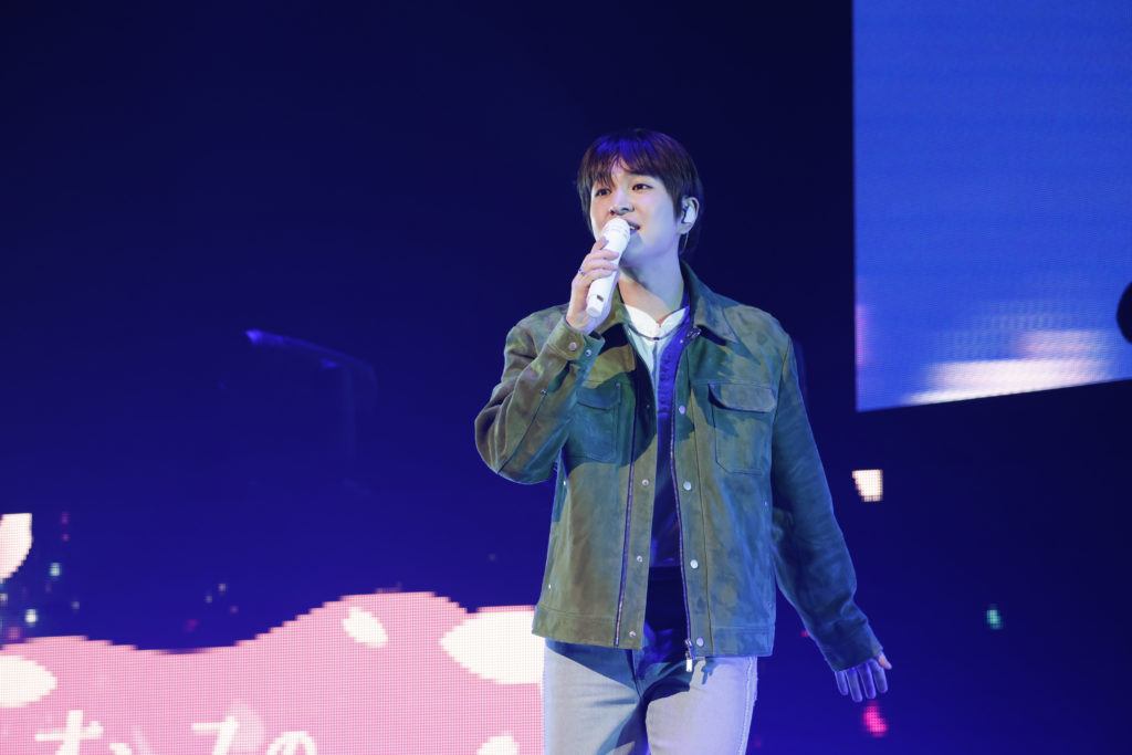 リズミカルなビートが心地よい「beat drum」に続いては、「春らしい曲をたくさん用意しました。暖かい春の風を僕の歌で感じて公演を楽しんでください」とONEW(オンユ)がコメントし、2022年7月に発売した日本1st album「Life goes on」に収録されている「鱗」、「キラキラ」と日本のカバー曲を2曲披露。日本語も堪能なONEW(オンユ)だからこその表現力と歌唱力で魅せた。