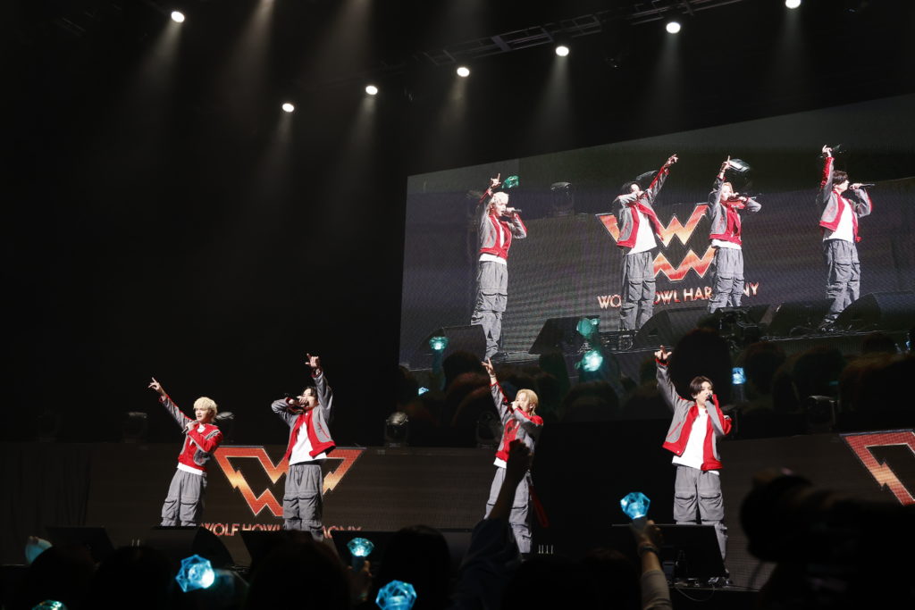 続くWOLF HOWL HARMONYのステージパートでは、3月12日にリリースされる1stアルバム「WOLF」から新曲「爆音 -BAKUON-」を初披露するサプライズに加え、メンバー自身の夢を見る事は素敵だという思いが込められた「Frozen Butterfly」をアカペラで披露。さらに事務所の先輩、三代目J SOUL BROTHERS from EXILE TRIBEの「最後のサクラ」のカバーまで全5曲の全力ステージで会場を盛り上げた。