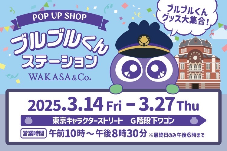 株式会社わかさ生活(本社:京都市下京区)は、2025年3月14日(金)~27日(木)の期間限定で東京駅一番街に位置する「東京キャラクターストリート」 G階段下ワゴンにて、POP UP SHOP「ブルブルくんステーション ブルーベリーエクスプレス」を開催いたします。