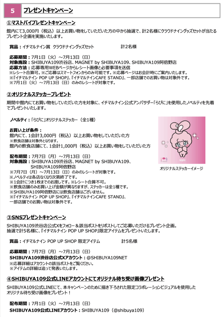 POP UP SHOP特設ページ:https://www.shibuya109.jp/blog/?pi3=361869