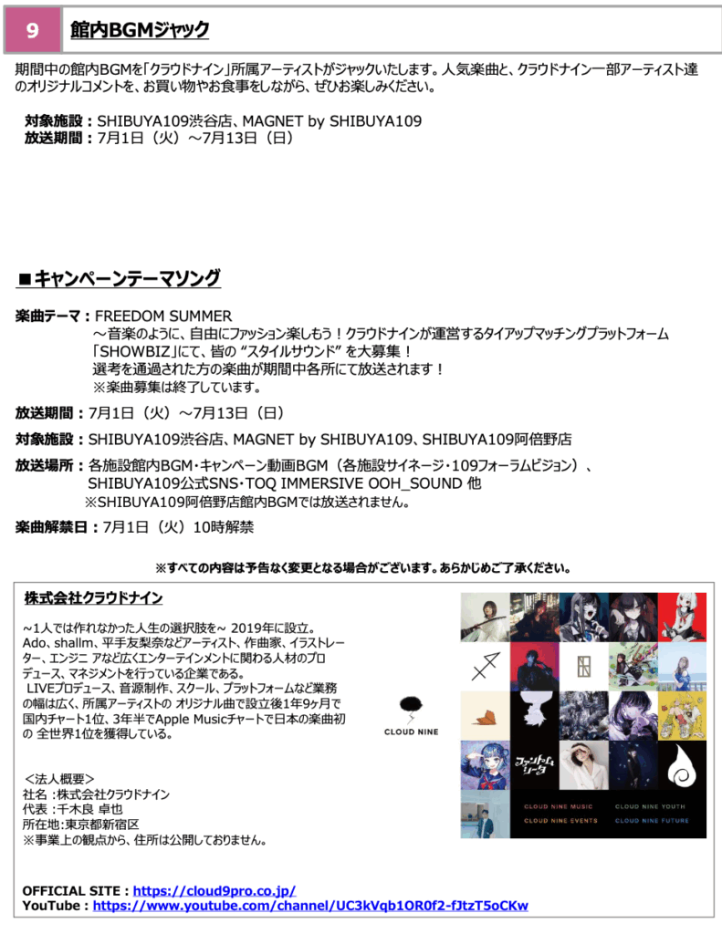 株式会社クラウドナインとSHIBUYA109が初のコラボレーション!