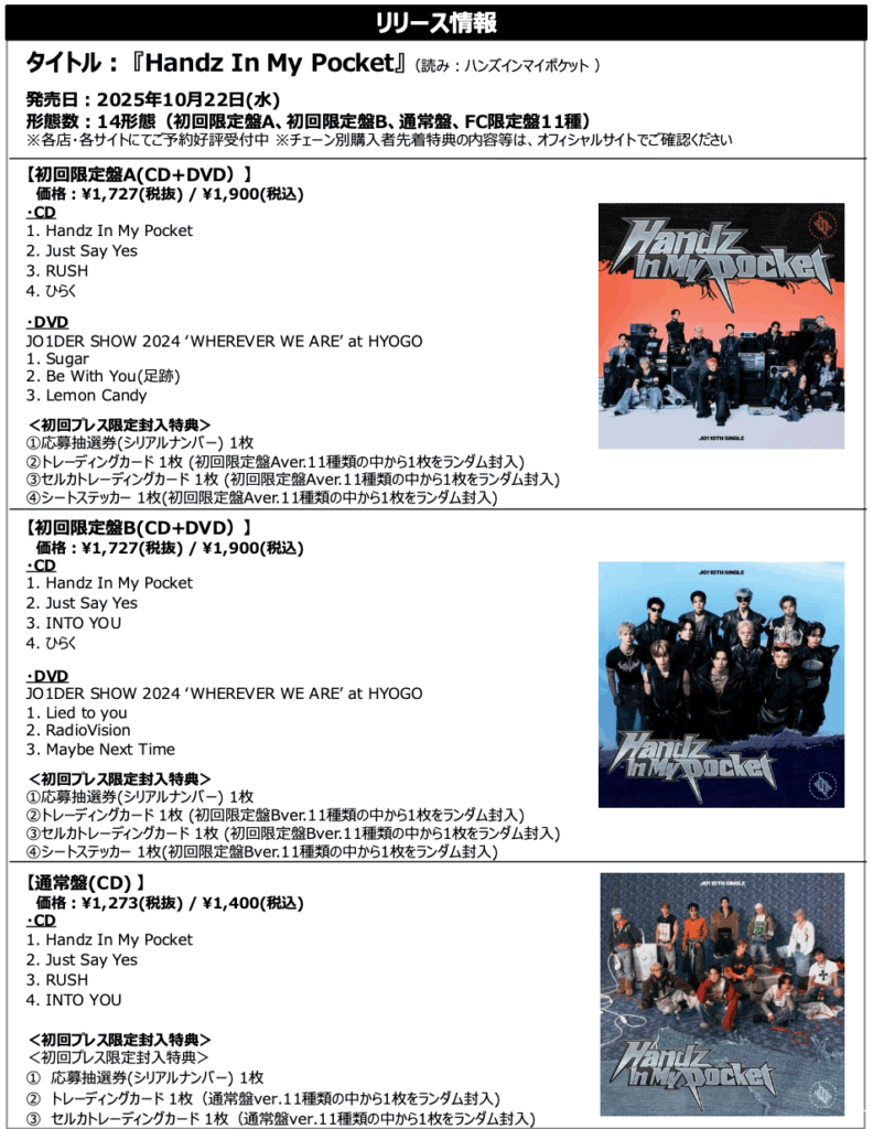 グローバルボーイズグループ“JO1”が、2025年10月22日(水)にリリースする10TH SINGLE『Handz