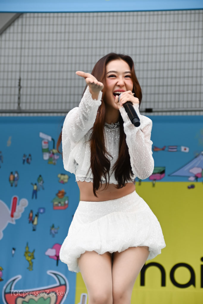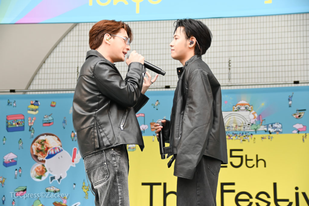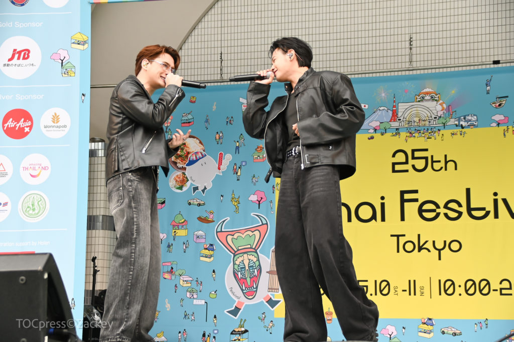 真っ白な衣装に身を包み、「Your Story」を歌いながらステージに登場すると、大きな歓声と「かわいい!」という声が飛び交った。初めてタイフェスティバル東京に参加することに緊張しているという2人は、ファンに向かって「ナーラク(かわいい)」と伝えると、観客からも「かわいい」の声が返ってきて和やかな雰囲気に。