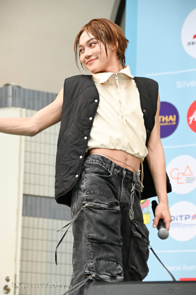 Nutが「LYKNのこと待っていた人?」と問いかけると、大きな歓声が再び沸き上がる。彼らはこの日のために多彩な楽曲を準備しており、「一緒に歌ってください!」と呼びかけ、日本語でのあいさつを終えるとステージは本格化。「TRICK OR TREAT」、ドラマ「ThamePo」のサウンドトラック「Would You Mind?」といったキュートな楽曲でLYKNの愛嬌を見せつけ、バラード「NO WORRIES」では片思いの切なさを情感たっぷりに歌い上げ、歌唱力の実力も存分に示した。後半になると、軽快な「UMM UMM」や「ThamePo」オープニング曲の「Who Says」でテンポアップし、荒々しいパワーと力強さで観客を圧巻。ラストは「CHARM」を情熱的にパフォーマンスし、代々木公園全体を熱狂の渦に巻き込んだ。Legoのキレとしなやかさが光るダンス、Williamの力強くエモーショナルな歌声、Nutのグルーヴ感のある色気、Hongの滑らかなフロウ、Tuiのボーカルとラップを兼ね備えた表現力が融合し、5人が織りなすステージは、観客を最後まで夢中にさせた。