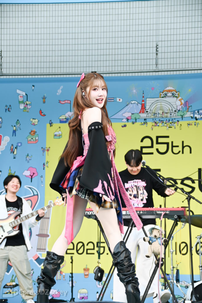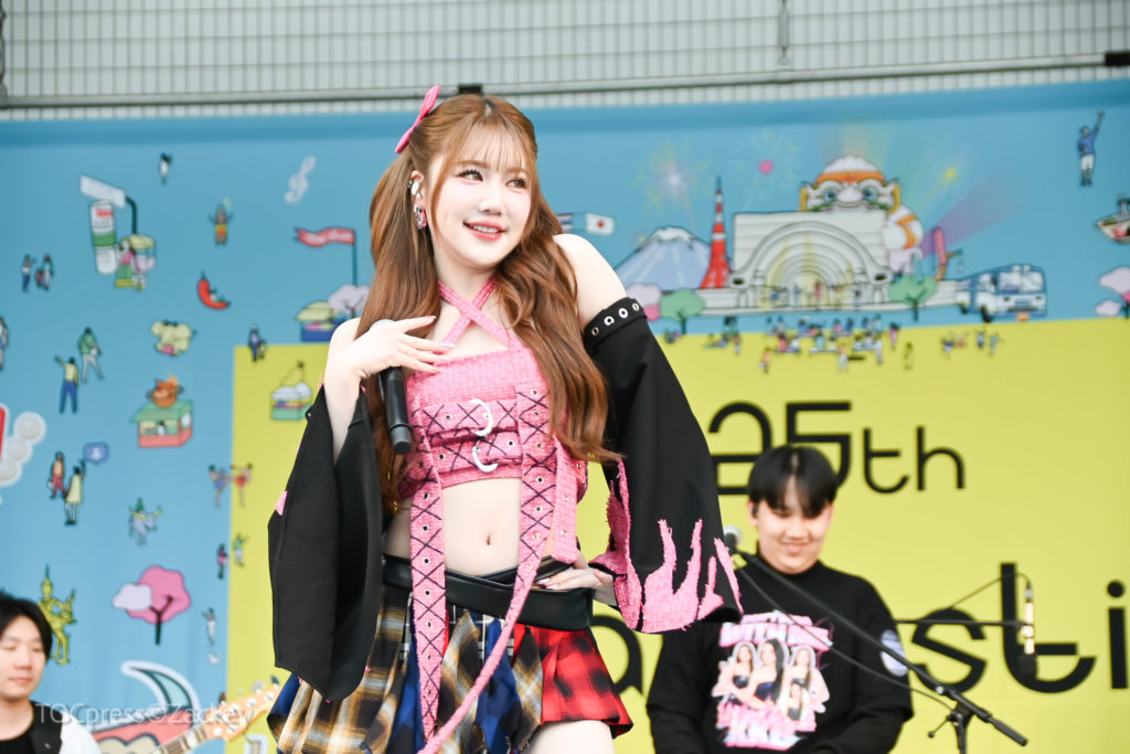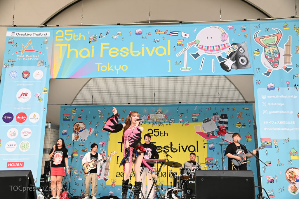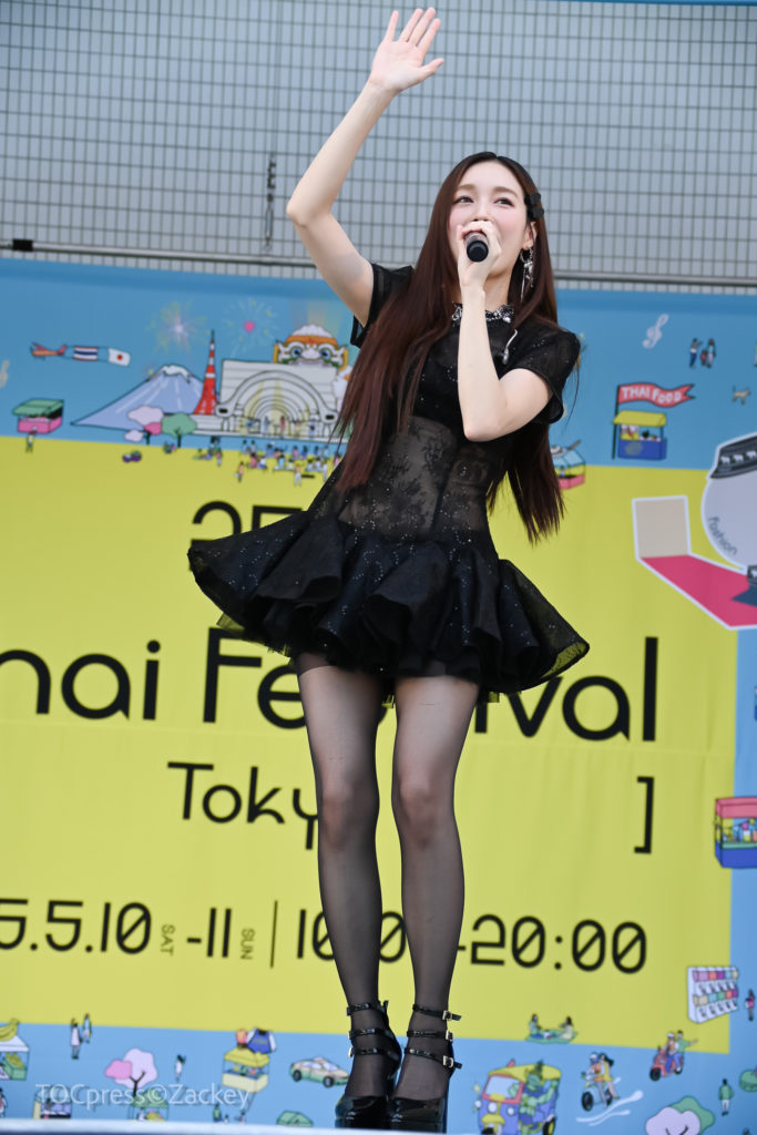 今回のタイフェスでは、ピンクとブラックを基調とした肩出し&ミニスカートでステージに登場し、夏を感じさせる爽やかなサウンドが魅力の「Hot Deal」で幕を開けると、キュートな愛らしさと感情豊かな歌声で観客を魅了。続いて、軽快なリズムの「Shuu!」、スローテンポで心地よいメロディーの「I’m a loser」を披露。ラストはALIE BLACKCOBRAとのコラボ曲「DOWN」から、代表曲「RIPE」へ。観客も一緒に歌いながら大盛り上がりに。タイ語の歌詞にも関わらず、大きな声で歌ってくれるファンに感動した彼女は、再び日本に来ることを約束し、投げキッスを送りながらステージを後にした。