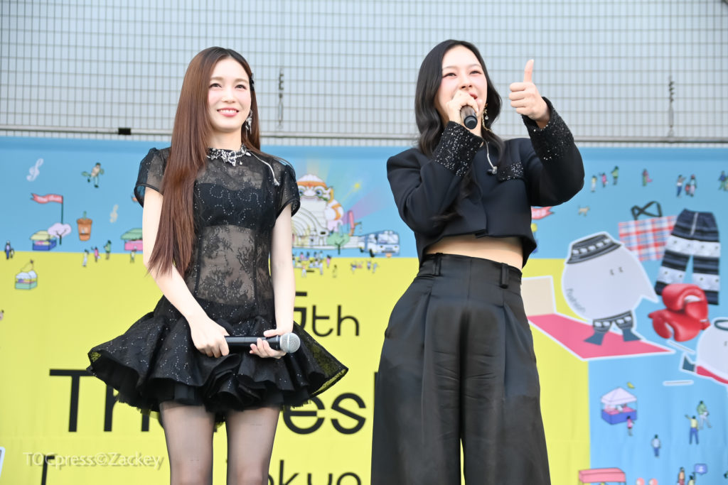 少し緊張気味だったMILKは、ステージを左右に動き回りながら、ファンに向けて何度もハートを送るなど、全力で交流を楽しんでいる様子。すると、動き回るMILKをLOVEが、「こっちに来て」と手招きするような仕草を見せ、そんな2人の自然なやり取りに、ファンからは笑顔と拍手が絶えなかった。