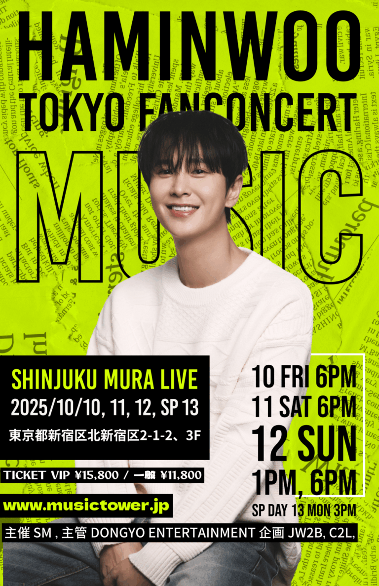 韓国発の人気グループZE:A(ゼア)のメンバーとして知られ、 俳優・アーティストとしても活躍する ハ・ミヌ(HAMINWOO)が、2025年10月に東京・ 新宿でソロコンサートを開催いたします。さらに、 最終日にはファン必見の スペシャル特典会 も実施予定。熱いステージとファンとの交流を兼ね備えた、 特別な4日間となります。