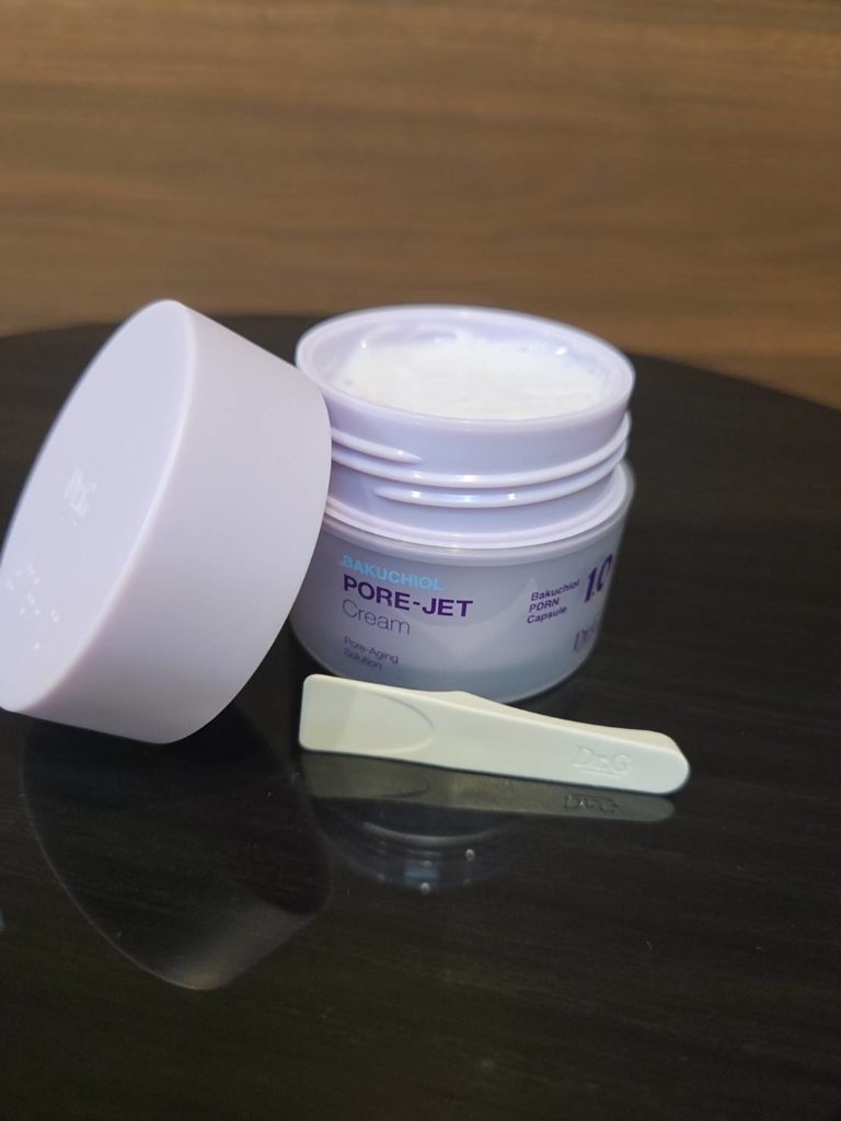 よーくみるとクリームの中に紫のカプセルが入ってて、このカプセルが速攻浸透するらしい。