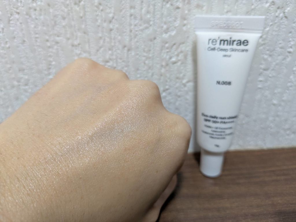 日焼け止めはクリームと比べると瑞々しいテクスチャーで、サラッと使いやすい!伸ばしたら自然なツヤが出ていたので下地に使うと自然な艶肌できて良さそう!