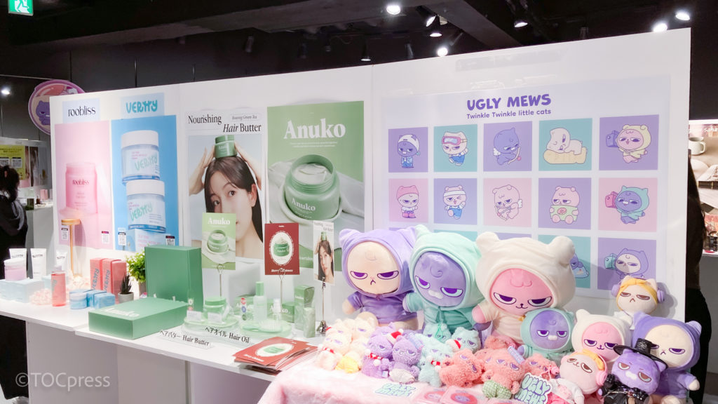 2階では韓国コスメの展示も。実際にタッチアップできたり、オフラインでは日本初上陸のアイテムもあったりと充実したラインナップ♪