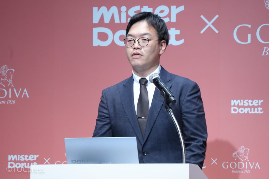 続いて、株式会社ダスキン 溝口さん(株式会社ダスキン ミスタードーナツ事業本部 企画開発本部 商品開発部 第1商品開発室)よりさらに具体的な新商品説明。パティシエ出身の溝口さんでもなかなか社内から合格をもらえず苦労したという。