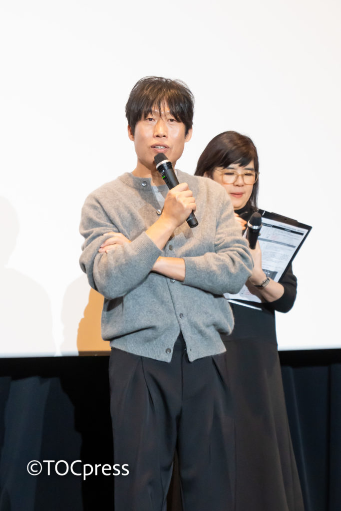ビョングク監督は作品づくりのポイントとして「ジャンルの面白さ」と「社会の空気を作品にどう織り込むか」の2点を挙げ、「観客の皆さんが途中で携帯をのぞくようなことがないような映画にしたい思っていましたが、果たしてうまくいったでしょうか?」と語りかけると、会場からは拍手が送られた。