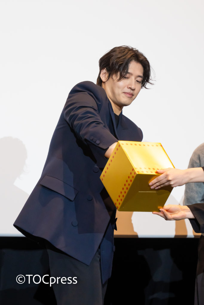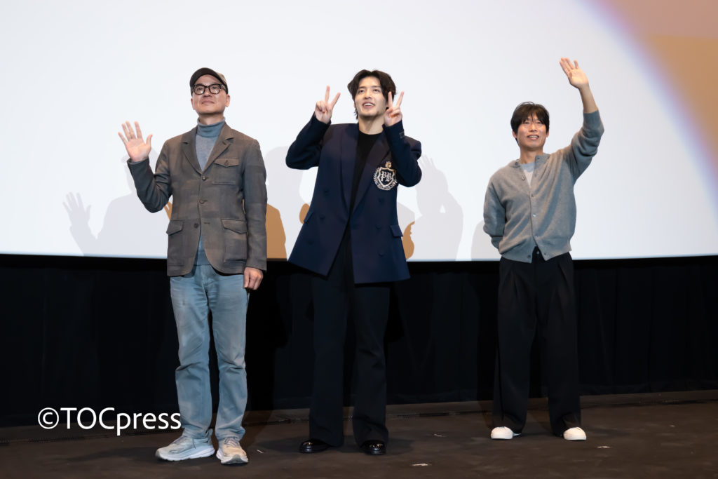 カン・ハヌルが抽選で「G」の紙を引き当て、G列の来場者全員がステージに上がり、3人と順にハイタッチを交わした。ユ・ヘジンは「韓国でも公開に合わせて舞台挨拶をすることは多いのですが、このようにハイタッチをする文化はなく、私にとって初めての経験でした。とても新鮮でした」と笑顔で語り、会場からも温かい拍手が送られた。
