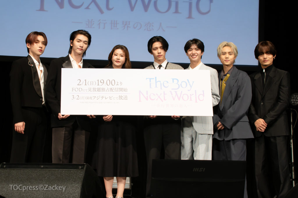 1月12日、Zepp Haneda(Tokyo)にて、ドラマ「The Boy Next World~並行世界の恋人~」の完成記念プレス発表会が行われ、南雲奨馬、濱屋拓斗、植村颯太、中山脩悟、Chaikamon Sermsongwittaya (Boss・ボス)、Nuttarat Tangwai(Noeul・ノウル)、MAME Orawan Vichayawannakul (原作)が登壇した。