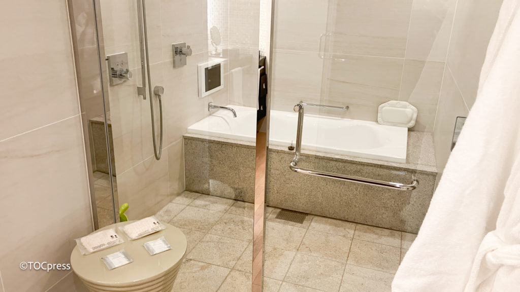 バスルームも広くて開放的。疲れがしっかりとれますね。