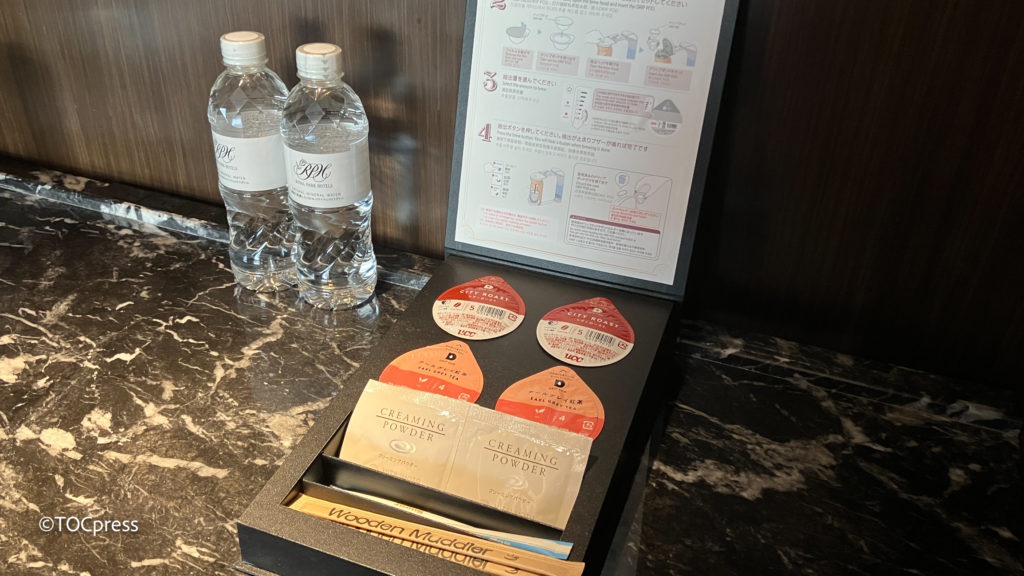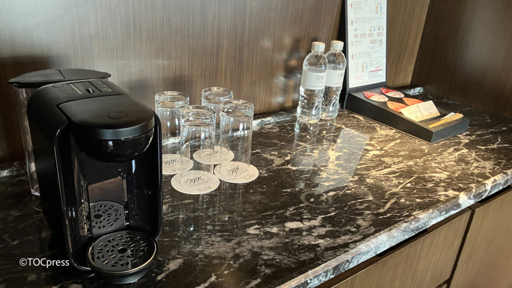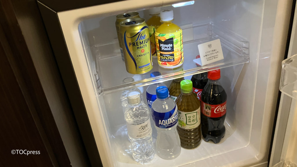 コーヒーメーカーやお茶、ミニバーにはジュースやお水もしっかりあるので「コンビニに飲み物買いにいかなきゃ」ということも回避できます。あ、もちろん羽田空港第3ターミナルに直結なので、屋外にでずに目の前にコンビニもあります。