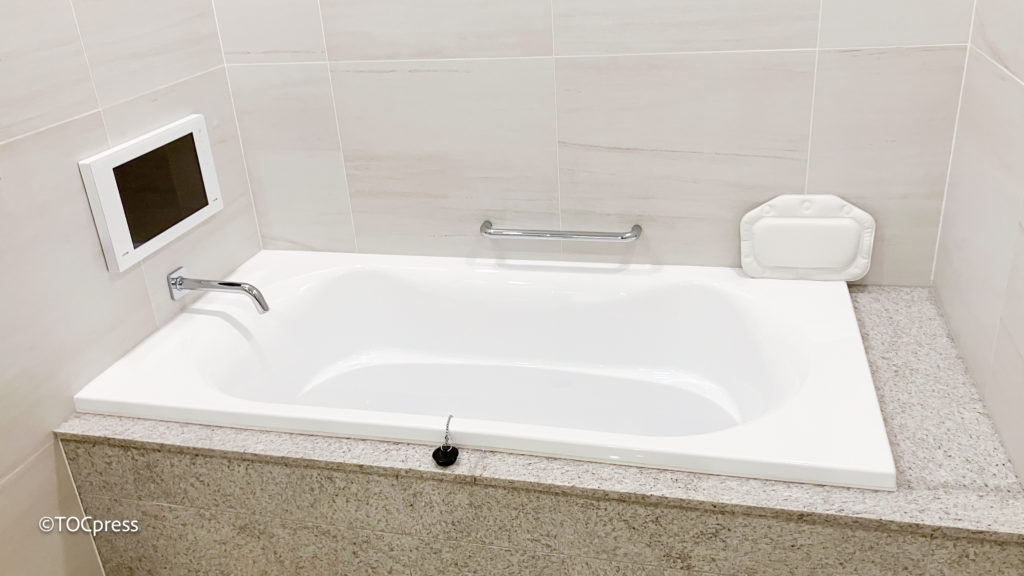 浴槽テレビやお風呂用のヘッドレストなんかもあって、長湯もいいかもです♪