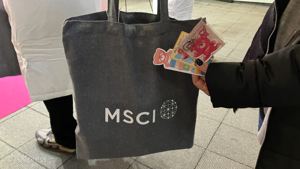 さらにオリジナルキャラクターとして誕生した資産形成の妖精(自称)である“e クマ(イークマ)”がブースに遊びにくることもあるとか?!
