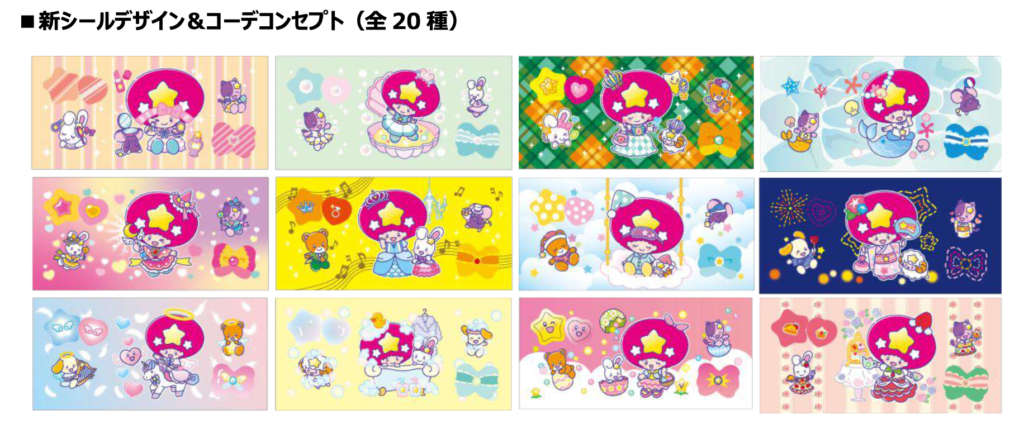発売 45 周年を記念して、「ツインクル 5 粒」が9年ぶりにコンセプトをリニューアル。2026 年 2 月 3 日(火)から 順次店頭に登場しています。新コンセプトは「女の子の好きなものを詰め込んだ宝石箱 」。パッケージ台紙のデザイ ンを変更したほか、おまけのシールの形状も変更。流行中のシール交換でも楽しめるように、星形、リボン形などバリエーシ ョンを増やしただけでなく、スマートフォンや PC の裏に貼っても楽しめるよう、四角いステッカータイプもご用意しました。シー ル裏面には、「ツインクル」のキャラクター「ツインクルちゃん」のファッションコーデポイントが描かれています。
