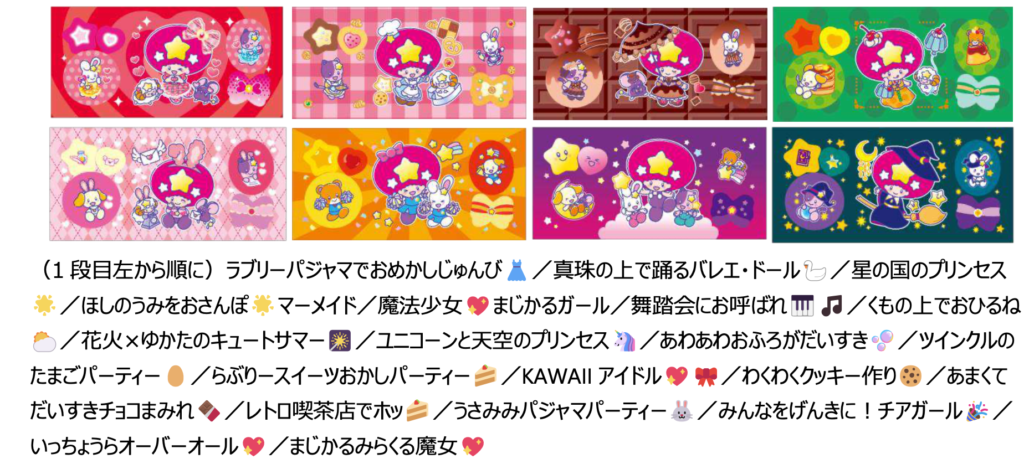 リニューアル後の「ツインクル 5 粒」を、“平成女児”文化を愛する人気インフルエンサー・りちさん、HARU さん、平成女 子♡めぐさん、yokopi さんにも手に取っていただきました。ツインクルのシールでシール帳を作ったり、リニューアルデザインの 中でお気に入りのものを探したりと、新しいツインクルを楽しむ様子をおさめた動画を近日投稿いただく予定です。ぜひチェ ックしてみてください。