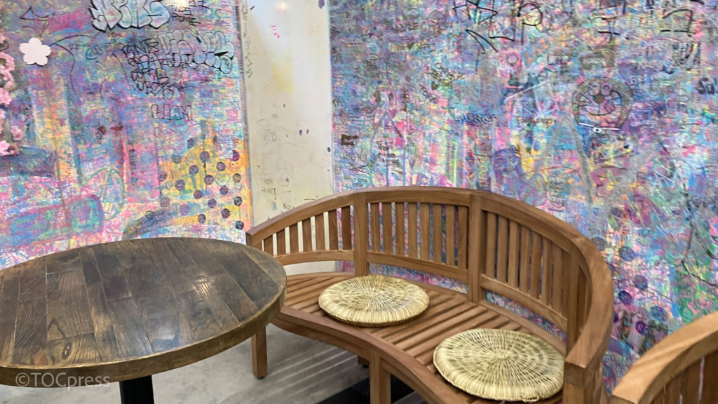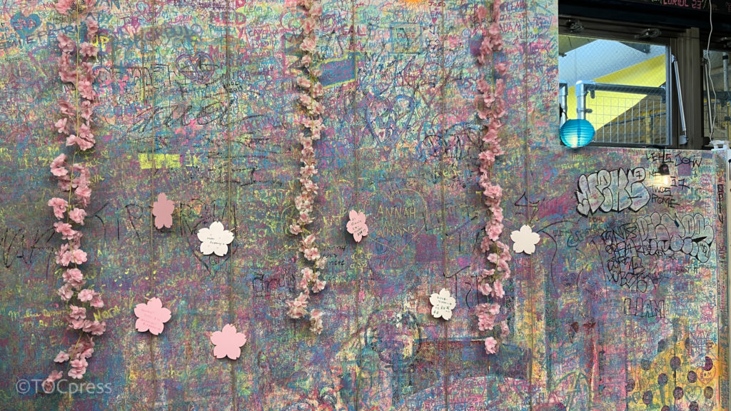 また、雨天時でも、雨に濡れることなく渋谷スクランブル交差点を眼下に渋谷の風景を堪能できる室内ラウンジも併設。日本文化を体験できるお客様参加型イベントを毎月開催するとのことで、いまはお雛様的になフォトスポットや、桜の記念カードで思い出を残して行けるコーナーもありました。