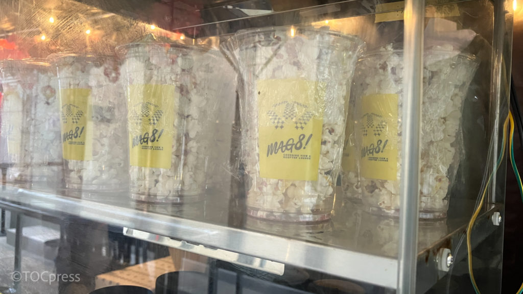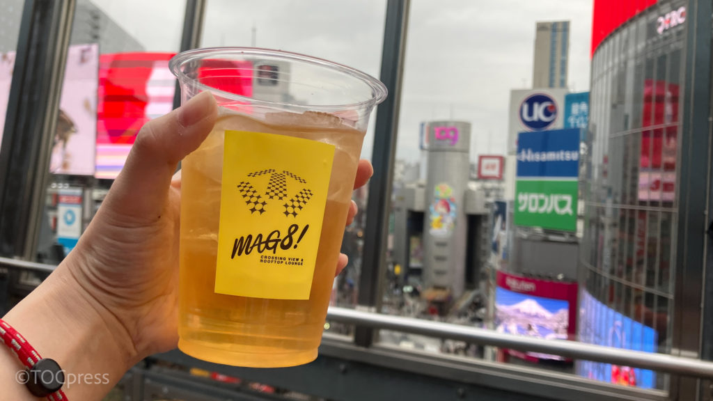 入場料金に1ドリンク(ソフトドリンク、またはアルコール飲料)の料金が含まれているので、ゆっくり座って休憩をしながら渋谷を空からながめるのも格別!ポップコーンなんかのスナック軽食もあります。