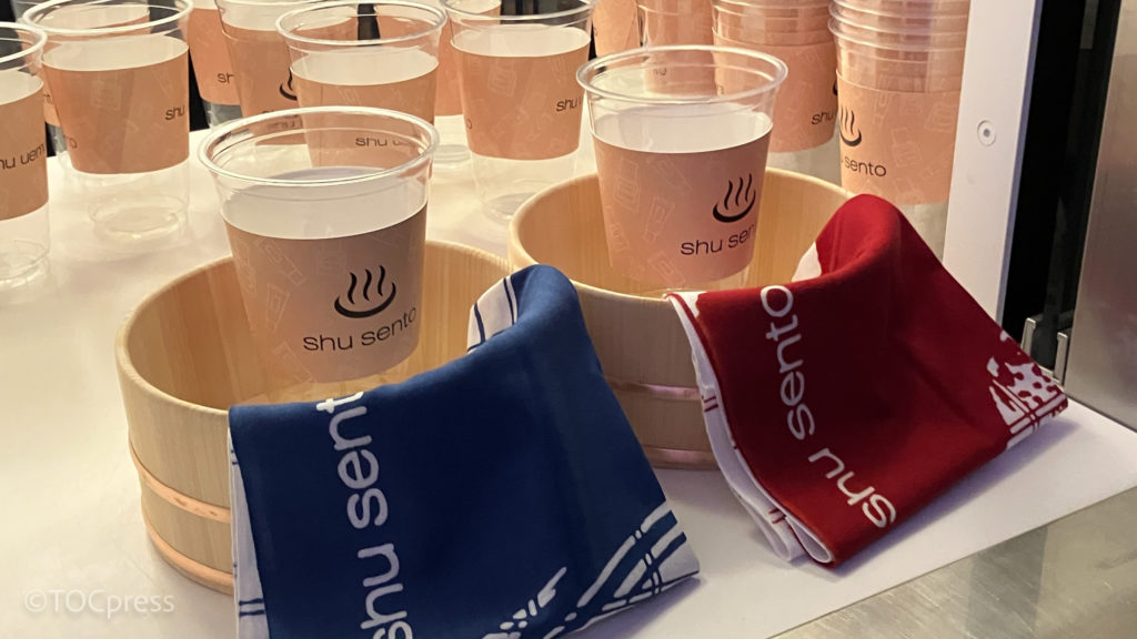 まず、のれんを潜って入り口の番台エリアでは、グローバルグループの&TEAM FUMA&JOが「shu sento」が特別ボイスで心を込めてお出迎え。