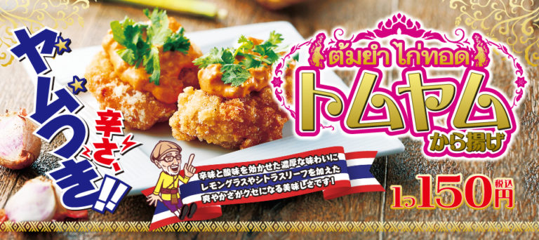 まだまだ気温が高いこの時期に食べたくなるタイ料理、から揚げの天才の「トムヤムから揚げ」をぜひぜひご賞味ください。