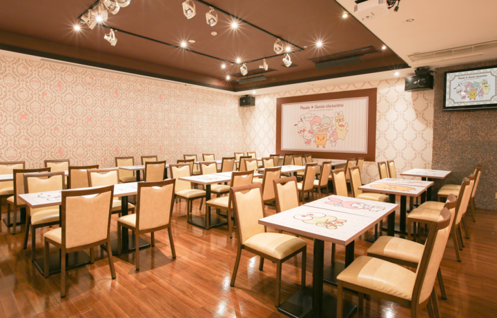 店内に一歩足を踏み入れると、ちょっとしたパーティーにお呼ばれしたかのような「オシャレ」で「かわいい」そして「高級感」のある雰囲気が広がります。細部までこだわった店内はテーブルだけではなく壁紙にもキャラクターがあしらわれており、360度見渡す限りの”オシャかわビュー”をご堪能いただけます。