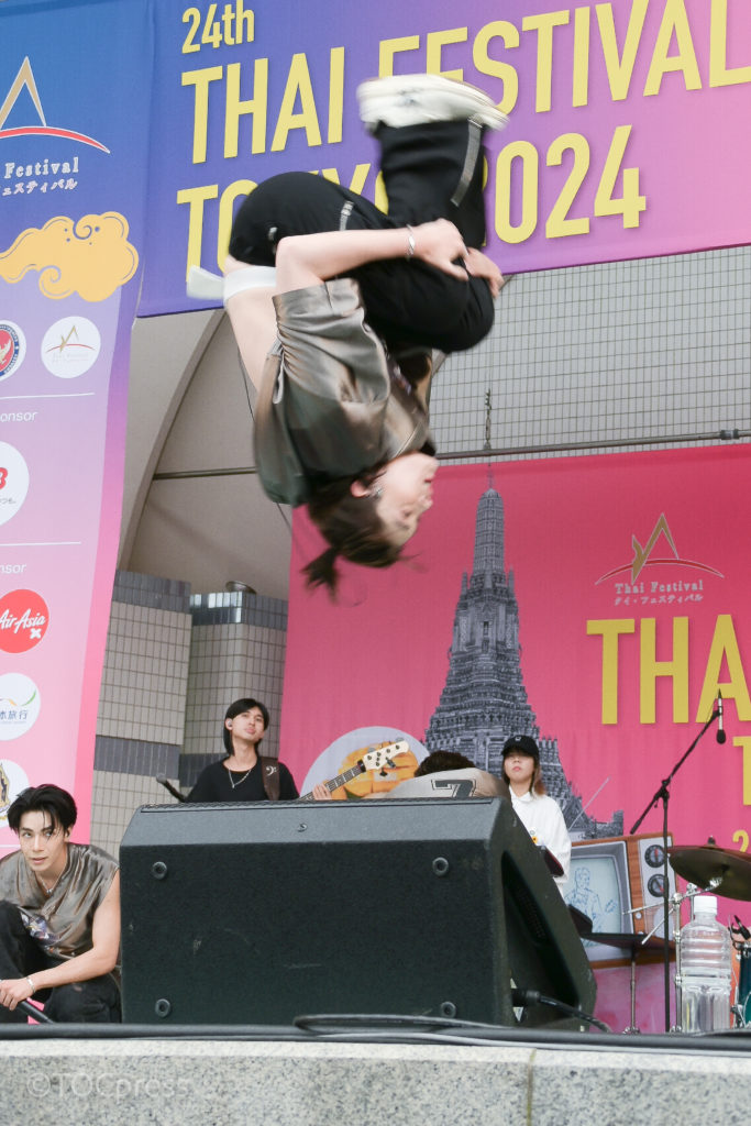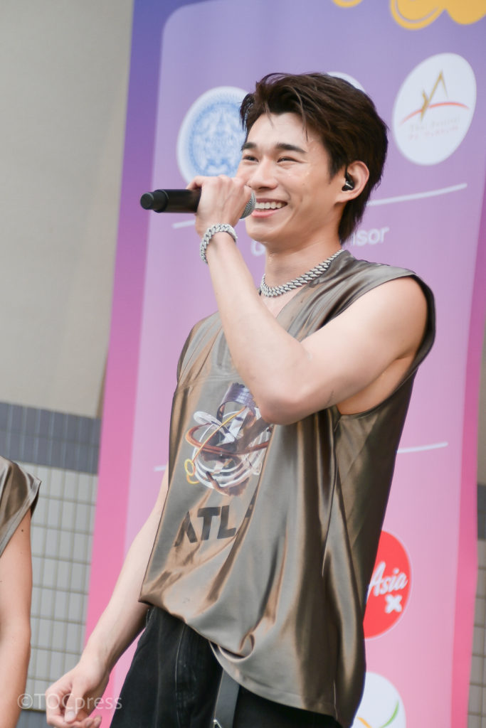 アツい歓声を浴びながら、メンバーが日本語で自己紹介していき、日本語が得意なMuonが「きょうは日本で初めてのSHOWです。ずっと僕たちの夢でした。どうぞよろしくお願いします」とあいさつすると、大きな拍手が沸き起こる。そして、TADが「次の曲にいきたいと思います。『Mangosteen』は知っていますか?」と投げかけると、ファンが熱い歓声で応えるなか次のステージへ。ドリーミーなエレクトロニックサウンドとリズミカルなバンドサウンドが響くなか、タイのポピュラーなフルーツ「果物の女王」と言われるマンゴスチンをフィーチャーしたユニークな歌詞と招き猫のような可愛い振付を見せ、軽快なステップを踏みながら楽しい雰囲気に。