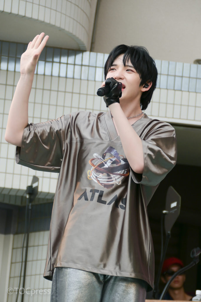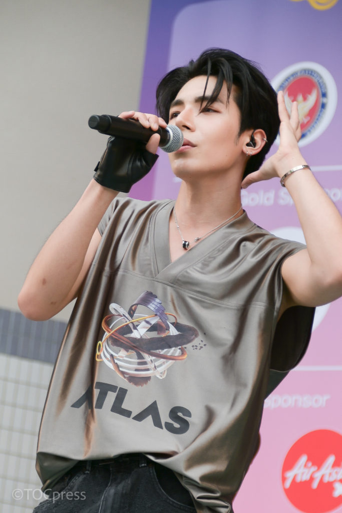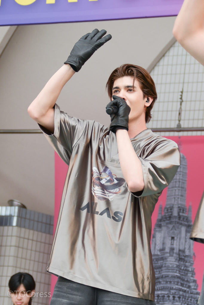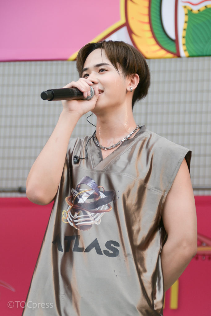 ドラマーがシンバルを響かせ、観客の期待を高まらせると、ノイジーなバンドサウンドが流れるなか、「こんにちは! みなさーん!」と言ってATLASが登場! 黄色い声援が響き渡ると、7人がステージに1列に並び、力強いビートに乗せて「Hey Hey!」と手を振り上げて観客を煽り、Erwinが「We are ATLAS from Thailand 一緒に盛り上がりましょう!」と言うと、ファンは大熱狂。1曲目にデビュー曲「MAYDAY MAYDAY」を披露し、若い力や信念、勇気などのメッセージを込めて「♪Fire fire」と歌うとファンもヒートアップ! エネルギッシュなパフォーマンスでファンを興奮させる。続けて披露した「Boyfriend」では、心地いいリズムとヴォーカルの優しい歌声でファンの心をとろけさせた。