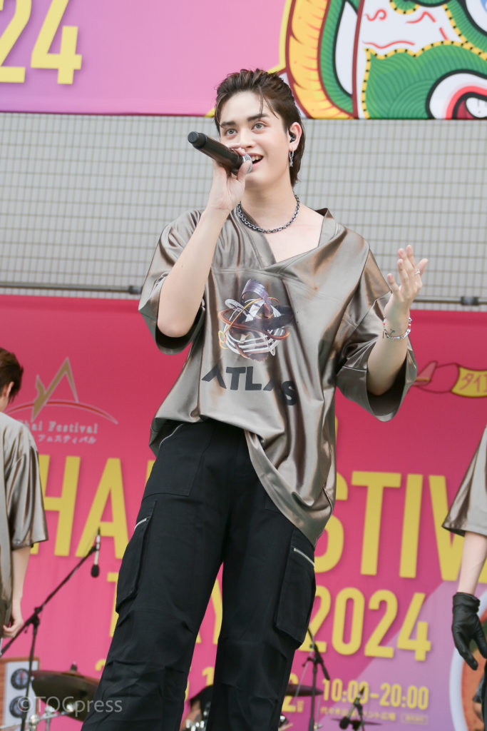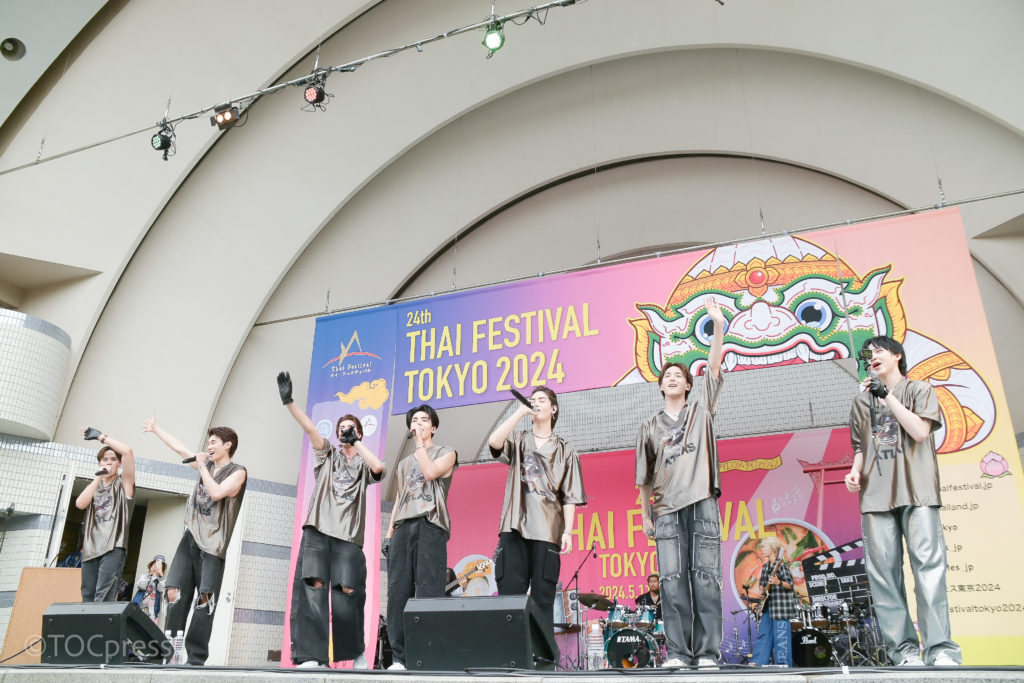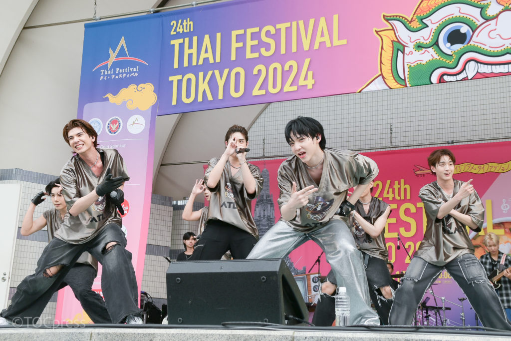 5月11日(土)・12日(日)、代々木公園イベント会場にて、「第24回タイフェスティバル東京」が開催され、今最もホットなアーティストたちが集結! XOXO Entertainmentから2021年にデビューした7人組ボーイズグループATLAS(アトラス)のステージでは生バンドを引き連れ、情熱がほとばしるパワフルなパフォーマンスを繰り広げた。