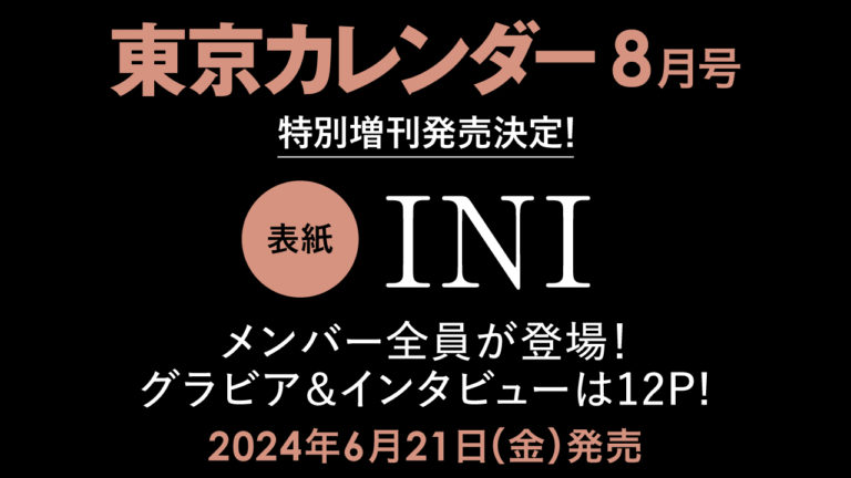 6月21日(金)発売予定の『東京カレンダー』2024年8月号(発行:東京カレンダー株式会社、本社:東京都品川区、代表取締役:坂下 陽子)において、INIのメンバーが表紙に総出演する特別増刊を刊行します。
