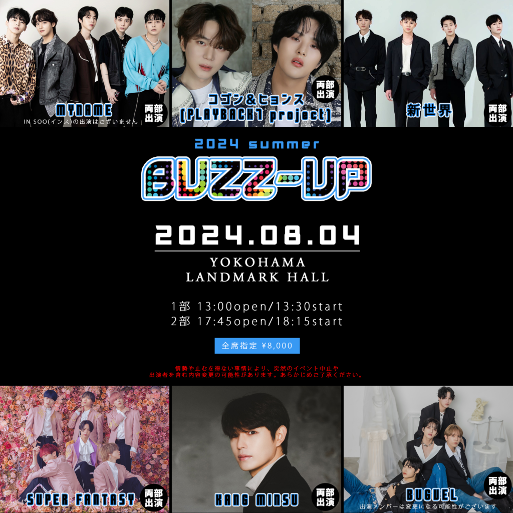 出演者:MYNAME / コゴン&ヒョンス(PLAYBACK7 project) / 新世界 / KANG MINSU / SUPER FANTASY / BUGVEL(※出演メンバーは変更になる可能性がございます。)