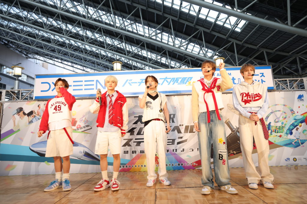 出席したJR西日本(バーチャル大阪駅長)の八重樫氏はDXTEENとのコラボレーションについて「今日実際に多くのファン