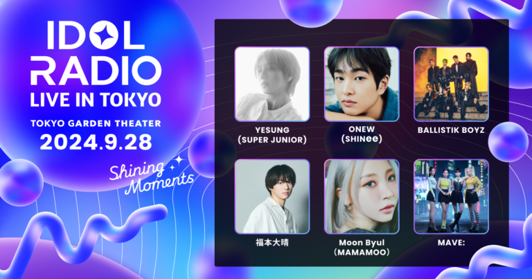 株式会社 mediba(本社:東京都品川区、代表取締役社長:新居 眞吾、以下 mediba)、株式会社 K Tomo(本社:東京都文京区、代表取締役:モ・ウニョン、以下 K Tomo)、株式会社ロイヤリティ マーケティング(本社:東京都渋谷区、代表取締役社長:長谷川 剛、以下ロイヤリティ マーケティング)は、「IDOL RADIO LIVE IN TOKYO 〜Shining Moments〜」を、2024年9月28日(土)に東京ガーデンシアターで共同開催いたします。その第1弾ラインアップとして、YESUNG(SUPER JUNIOR)、ONEW(SHINee)、BALLISTIK BOYZ from EXILE TRIBE、福本大晴、Moon Byul(MAMAMOO)、MAVE:の出演が決定しました。