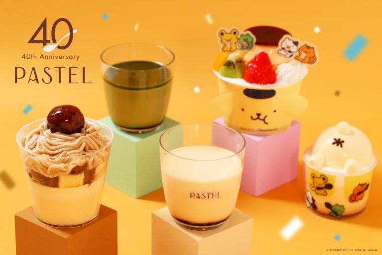 そしてこの度、創業40周年を迎えるにあたり、日頃ご愛顧いただいているお客様へ感謝の気持ちをお伝えすべく、9月1日(日)より40周年を記念した感謝祭を開催いたします。今年で5年連続コラボレーションをしている株式会社サンリオのキャラクター「ポムポムプリン」や、今年初めてコラボレーションをした宇治茶専門店「祇園辻利」とのコラボスイーツの復刻販売や、パステルの人気焼き菓子を詰め合わせた、お得な『PASTEL40周年記念バッグ』をご用意いたしました。
