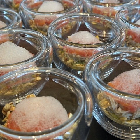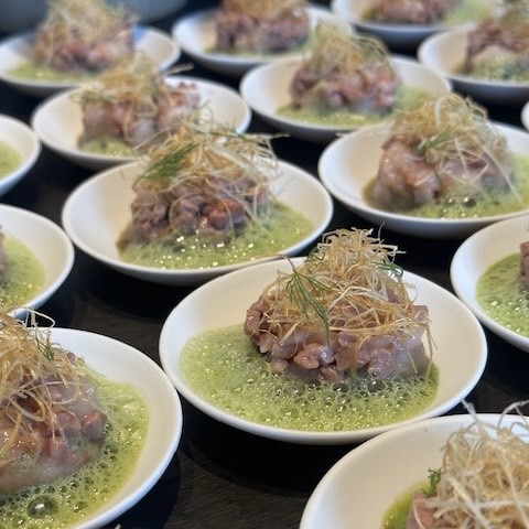 それぞれのこだわりのスペシャリテをアレンジしたメニューは、発表会後のカクテルパーティーにも並んだ。